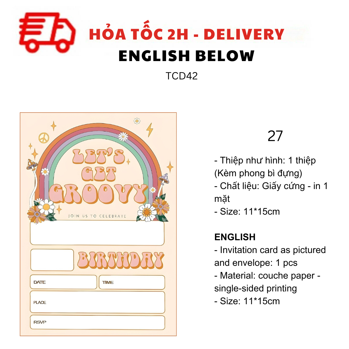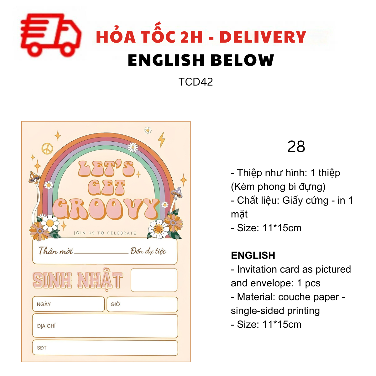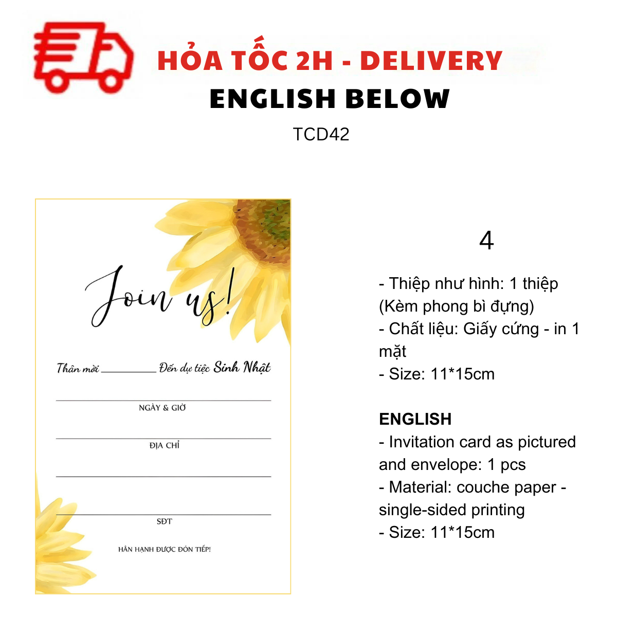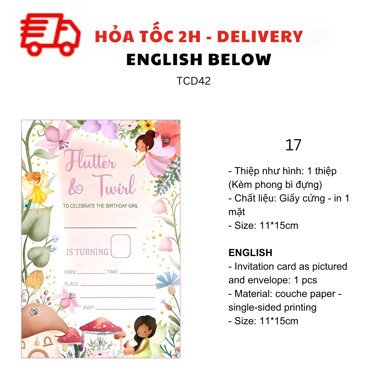 - Thiệp như hình: 1 thiệp (kèm Phong bì đựng)