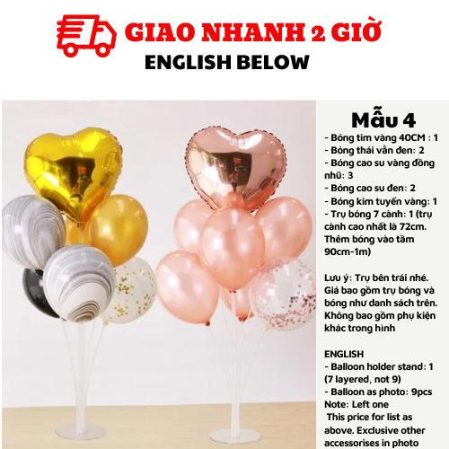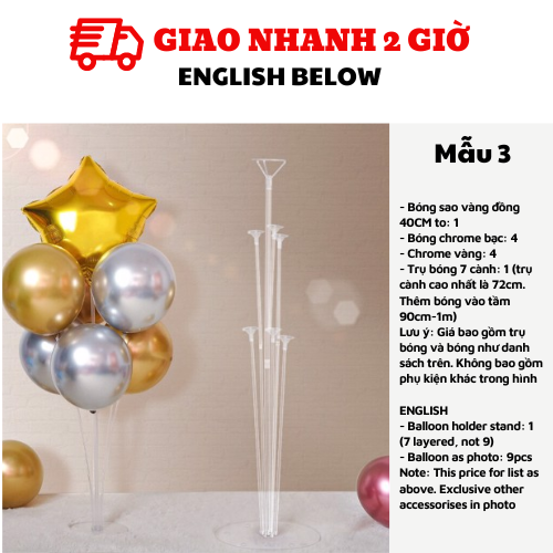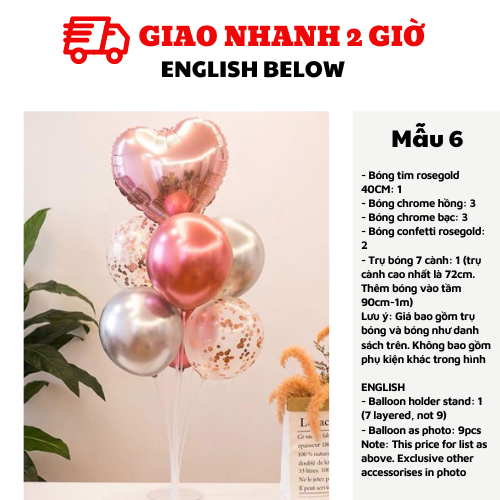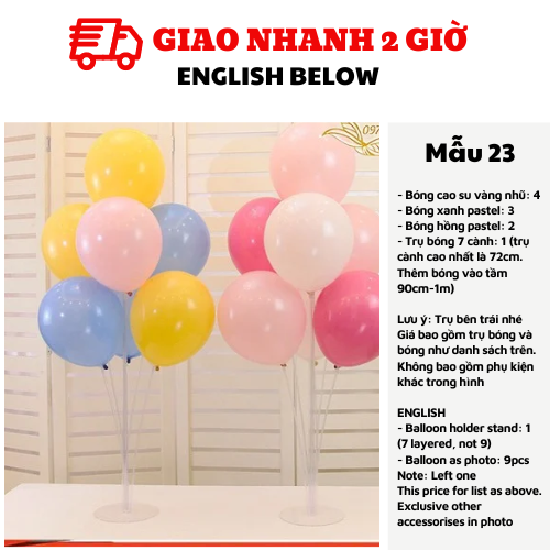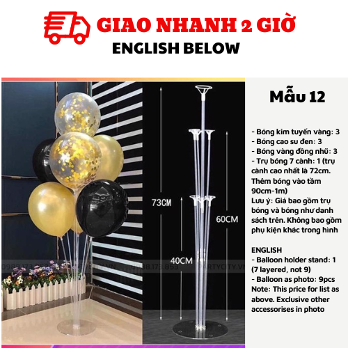 - Trụ bóng 7 cành: 1 (trụ cành cao nhất là 72cm. Thêm bóng vào tầm 90cm-1m)
