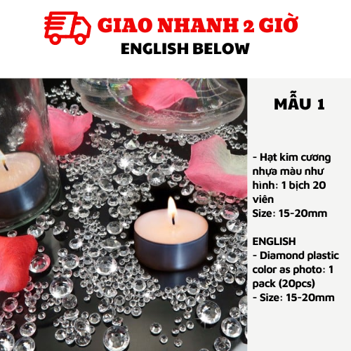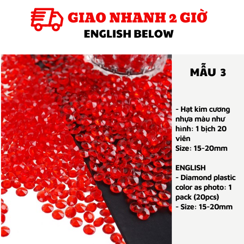 - Hạt kim cương nhựa màu như hình: 1 bịch 20 viên