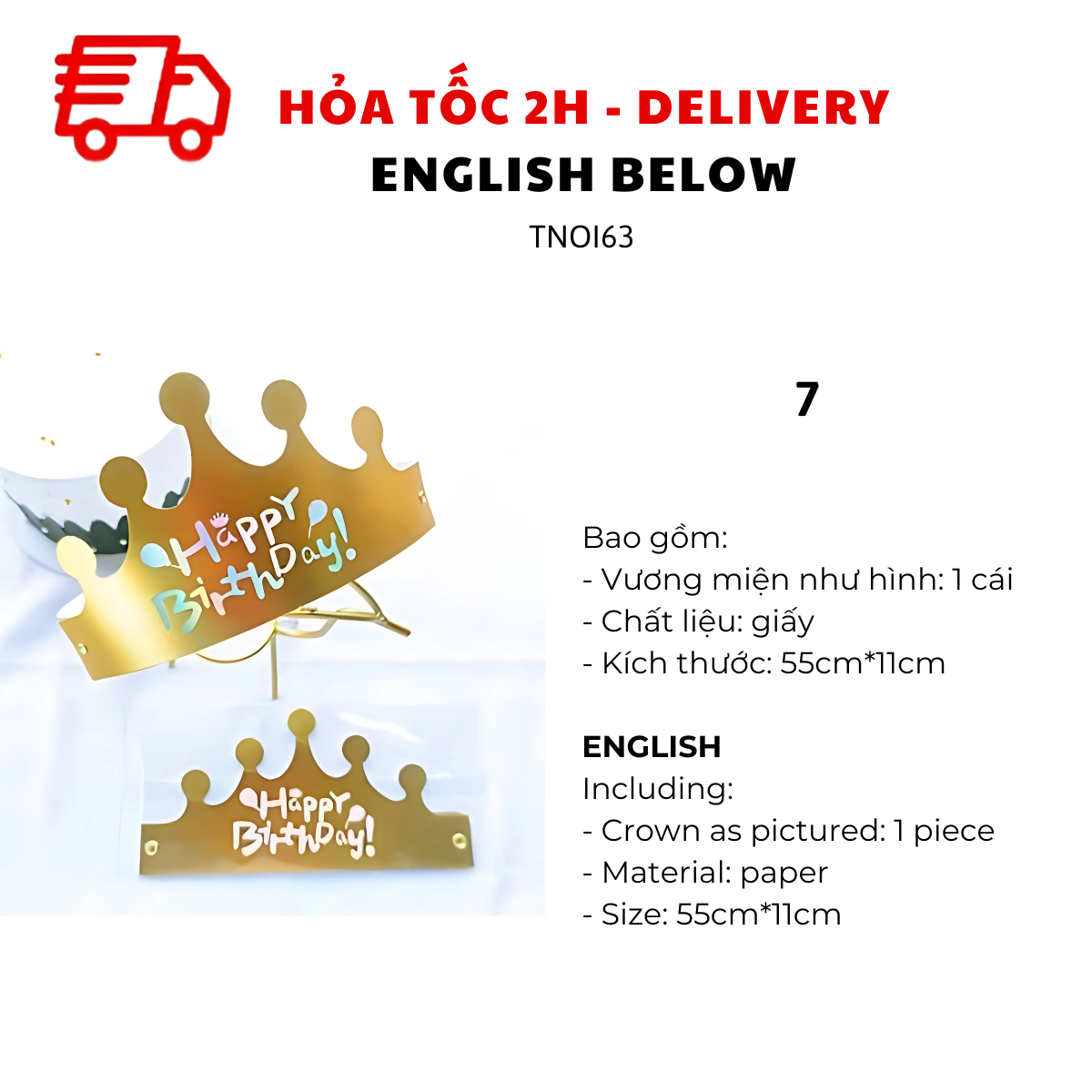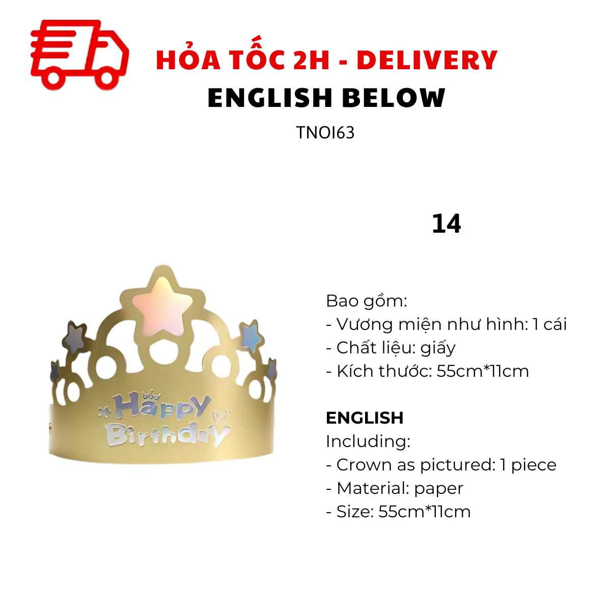 - Party Vui có chính sách đổi, trả sản phẩm miễn phí trong trường hợp giao sai sản phẩm, sai mẫu, không đúng mô tả, sản phẩm bị lỗi từ nhà sản xuất hoặc trong quá trình vận chuyển (vui lòng quay video mở gói hàng, video thể hiện lỗi sản phẩm để được đổi trả).
